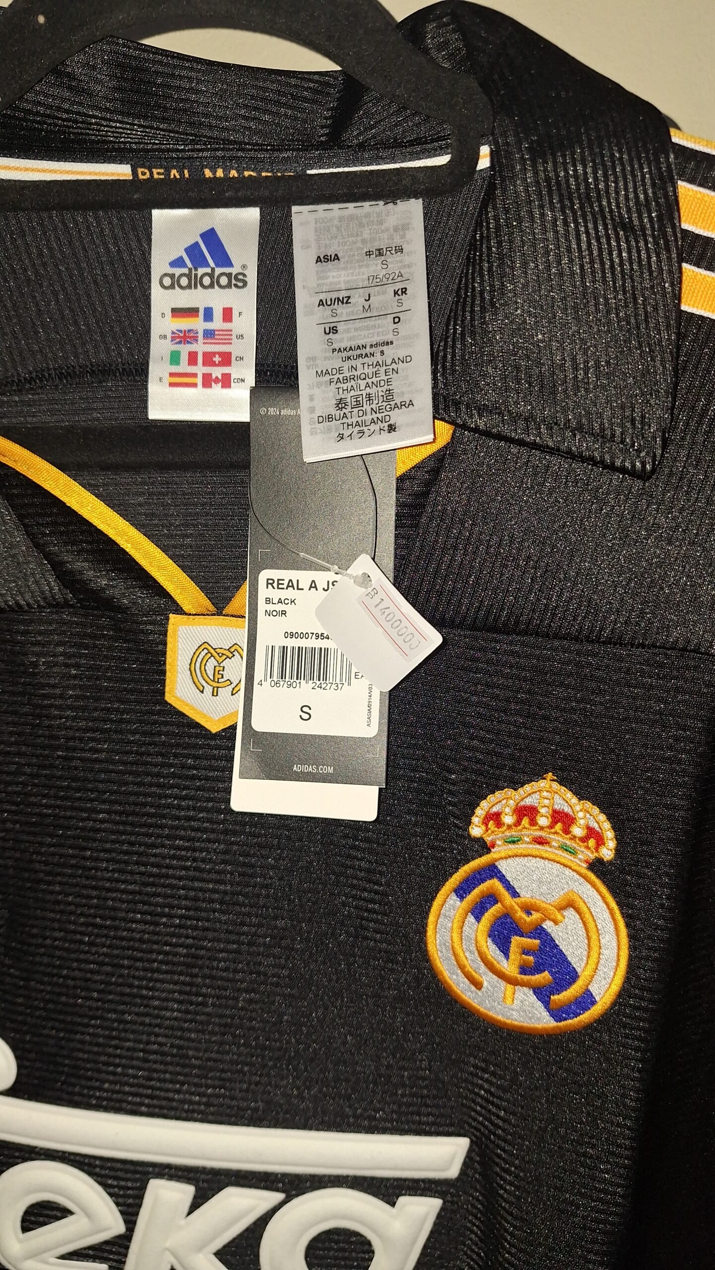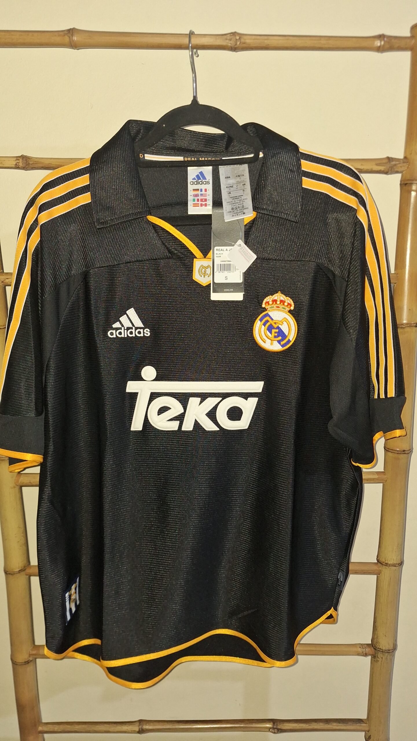 This Size S reissue mirrors the original design with impeccable attention to detail. From the iconic crest to the timeless color scheme, every element resonates with the passion of Real Madrid supporters. The fabric is lightweight and comfortable, making it suitable for both matchday and casual wear.